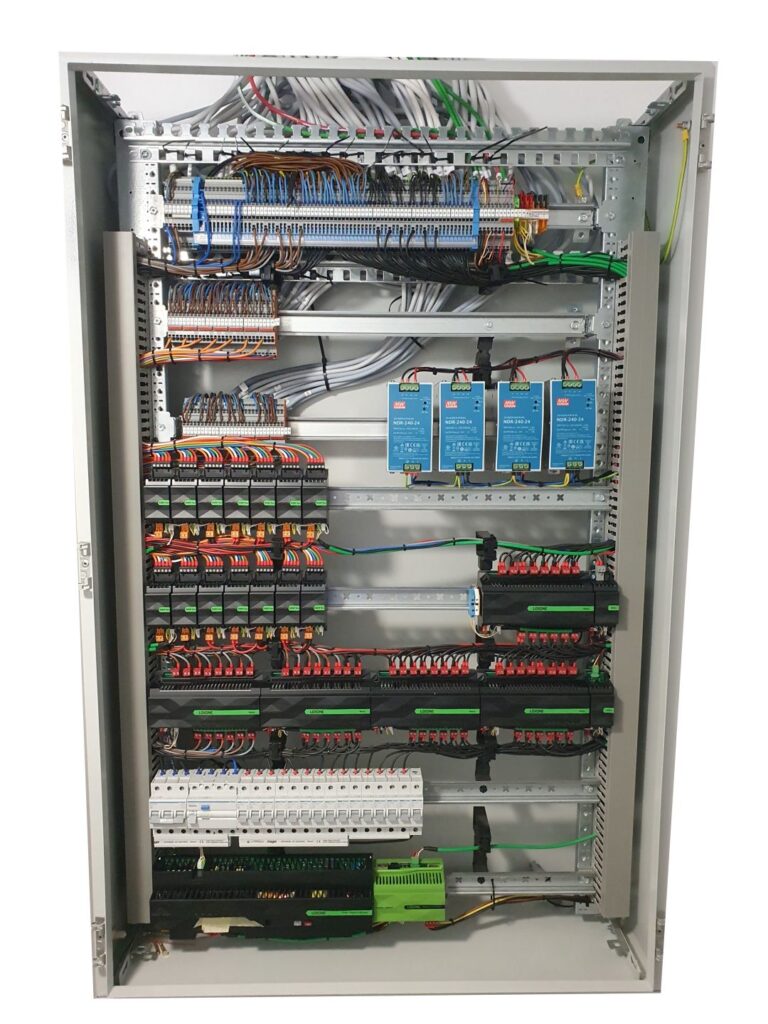 Ebből látszik, hogy valaki ért is a szakmájához, igényes is a munkájára. A vezetékek egyesével le vannak számozva, a sorkapocs kiosztás is le van dokumentálva. Bármikor módosítható a szekrény, vagy bővíthető, hiszen van benn elegendő hely, valamint tartalék egységek is.